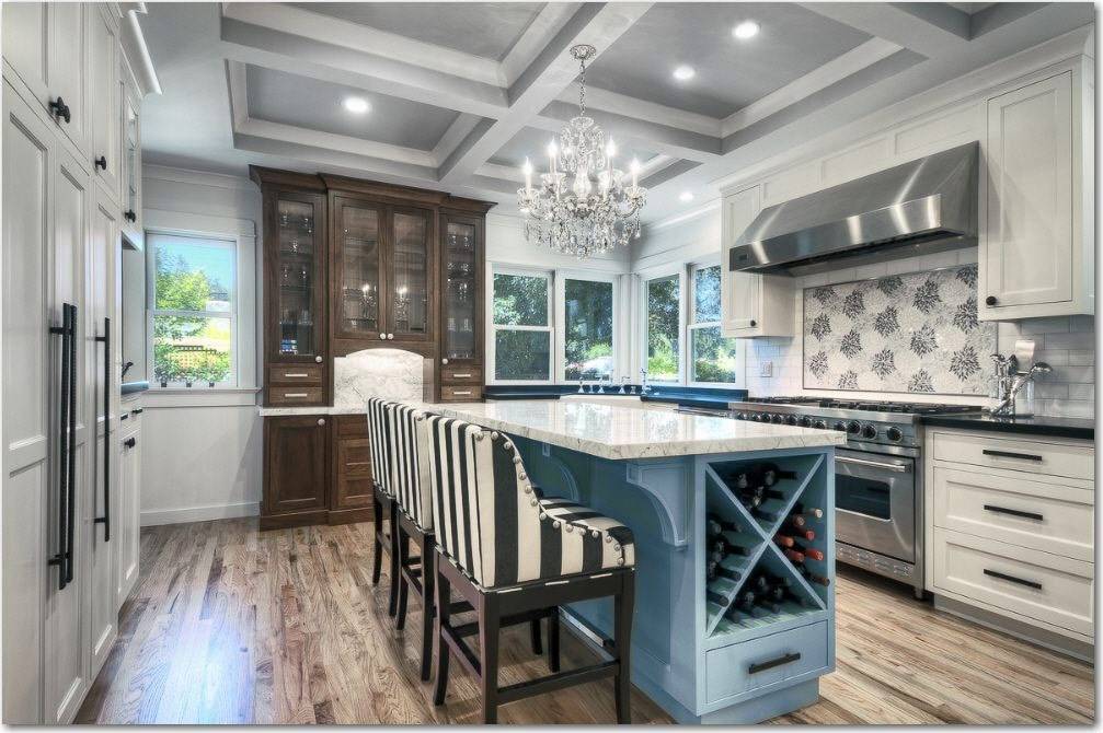 Капризный аристократичный стиль приемлет лишь натуральные материалы. Они красивые, но дорогие и порой непрактичные. Современная классика не так строга, она разрешает использование материалов, имитирующих натуральный камень или дерево. Фото интерьера кухни в стиле современная классика можно увидеть ниже.