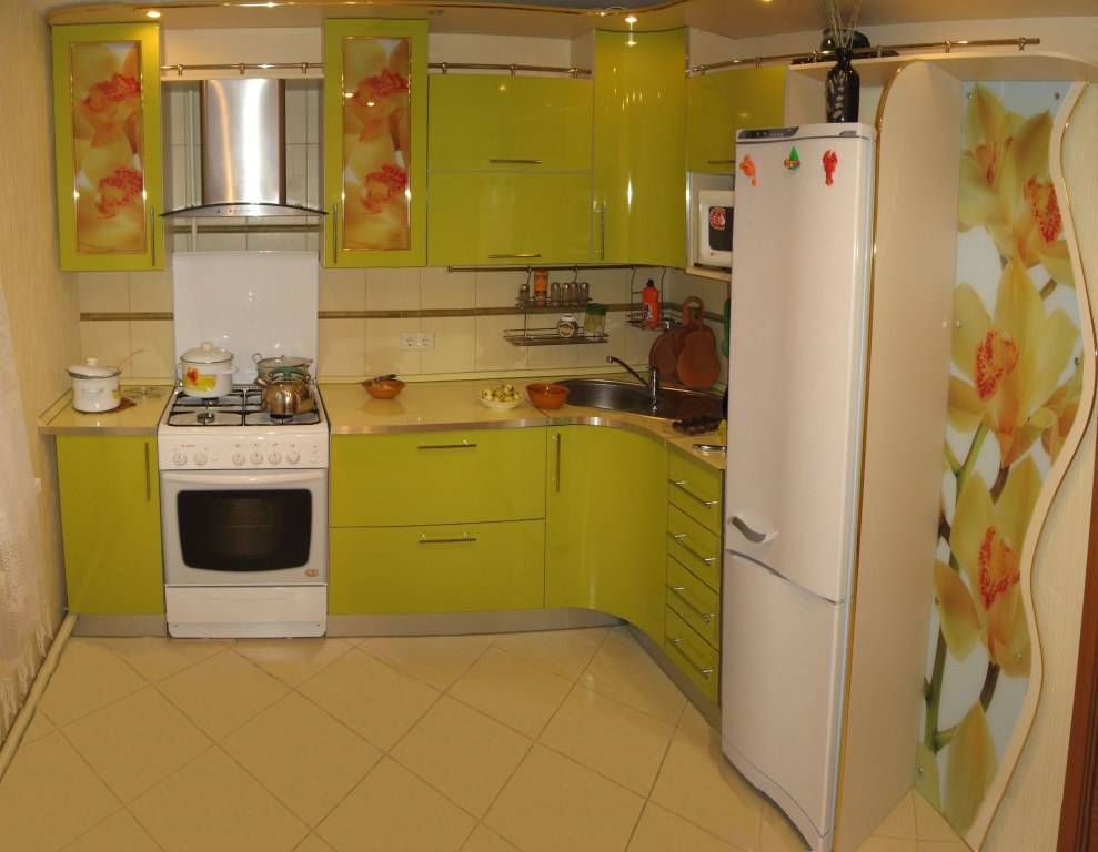 Важная особенность при планировании белой угловой кухни — правильное обустройство свободного угла. Он не должен быть выделен контрастным цветом и загромождён, иначе помещение рискует приобрести форму неправильного ромба.