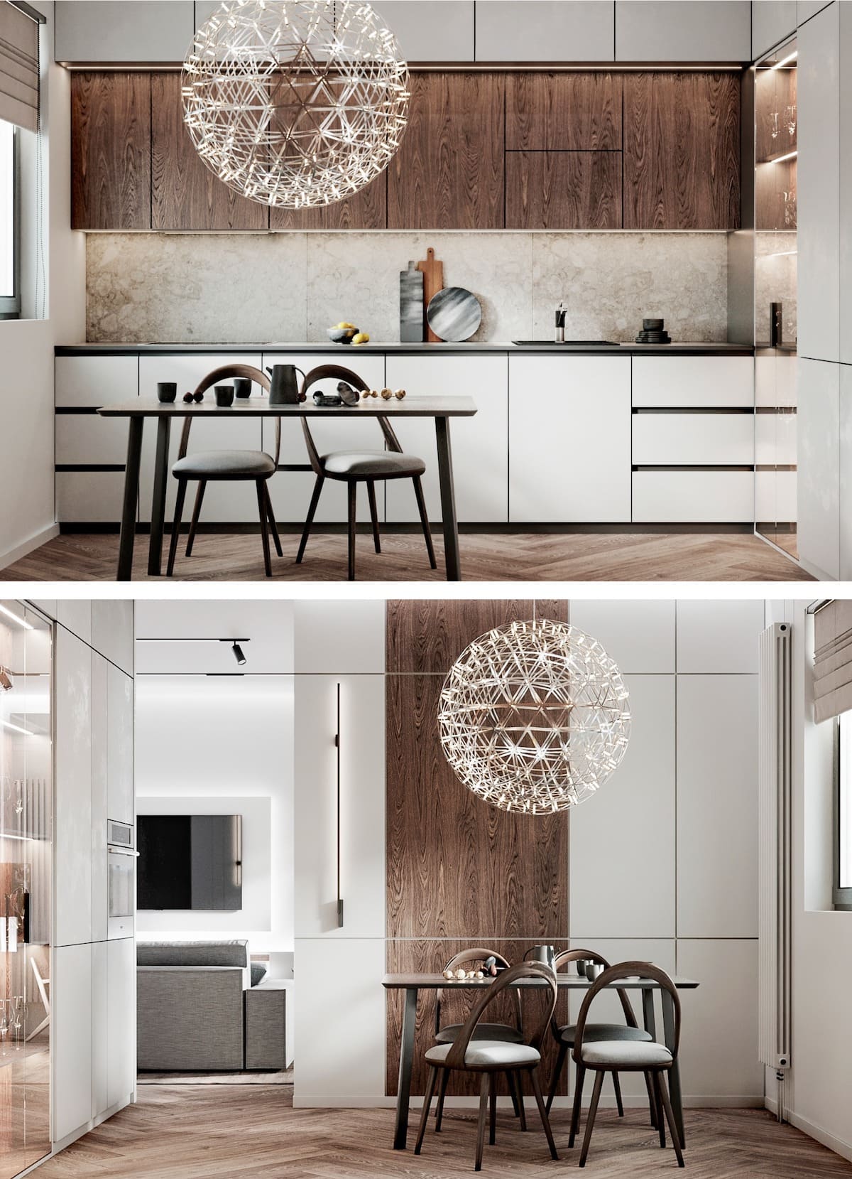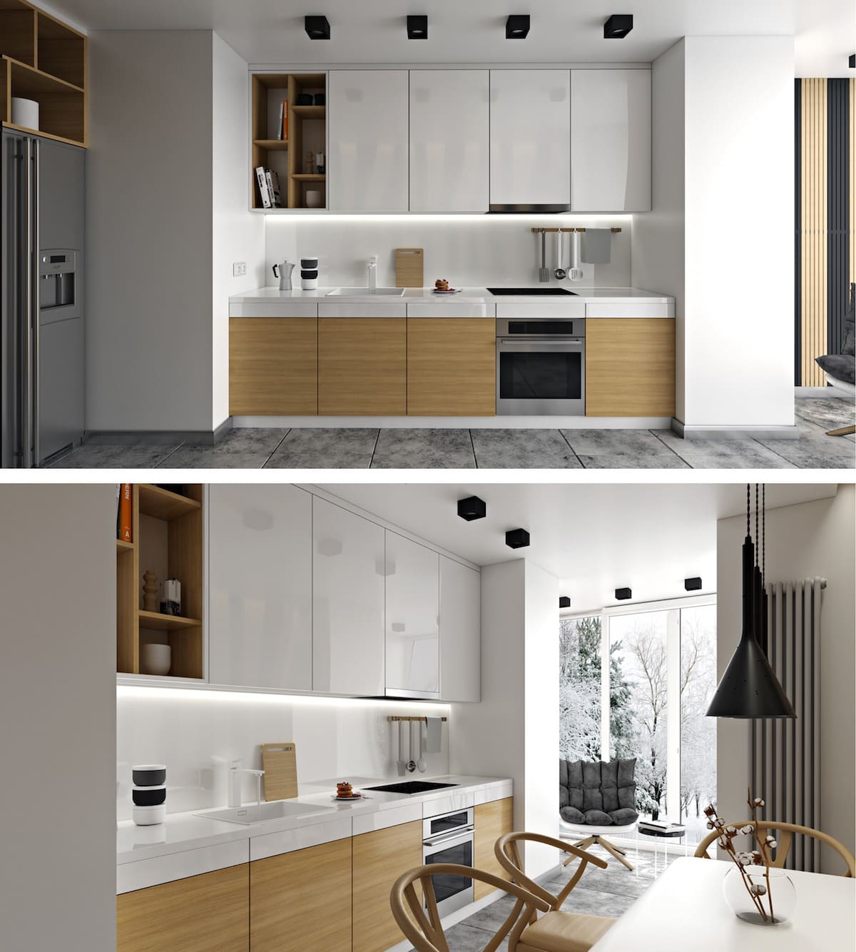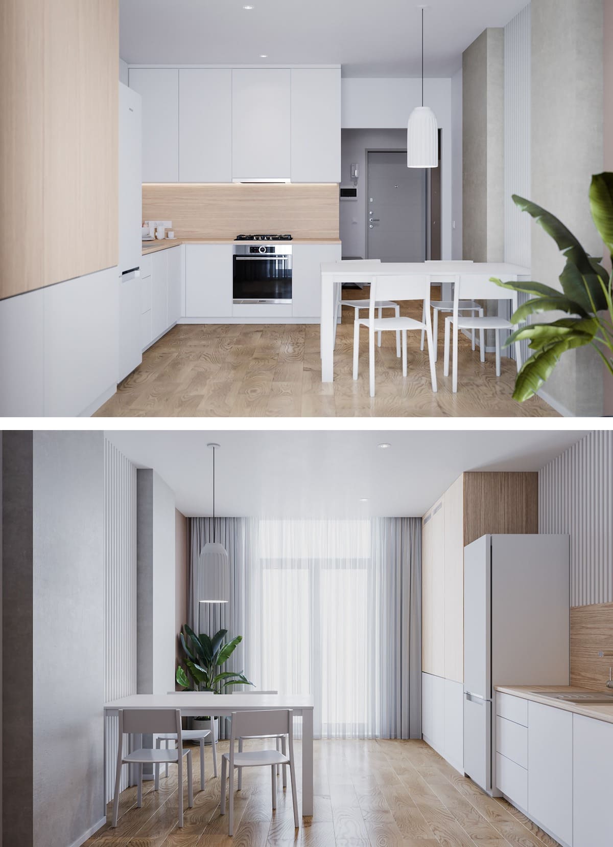Белый цвет — отличное решение для маленьких кухонь. Поскольку это самый яркий цвет в спектре, он может отражать свет, благодаря чему небольшое помещение кажется более просторным.