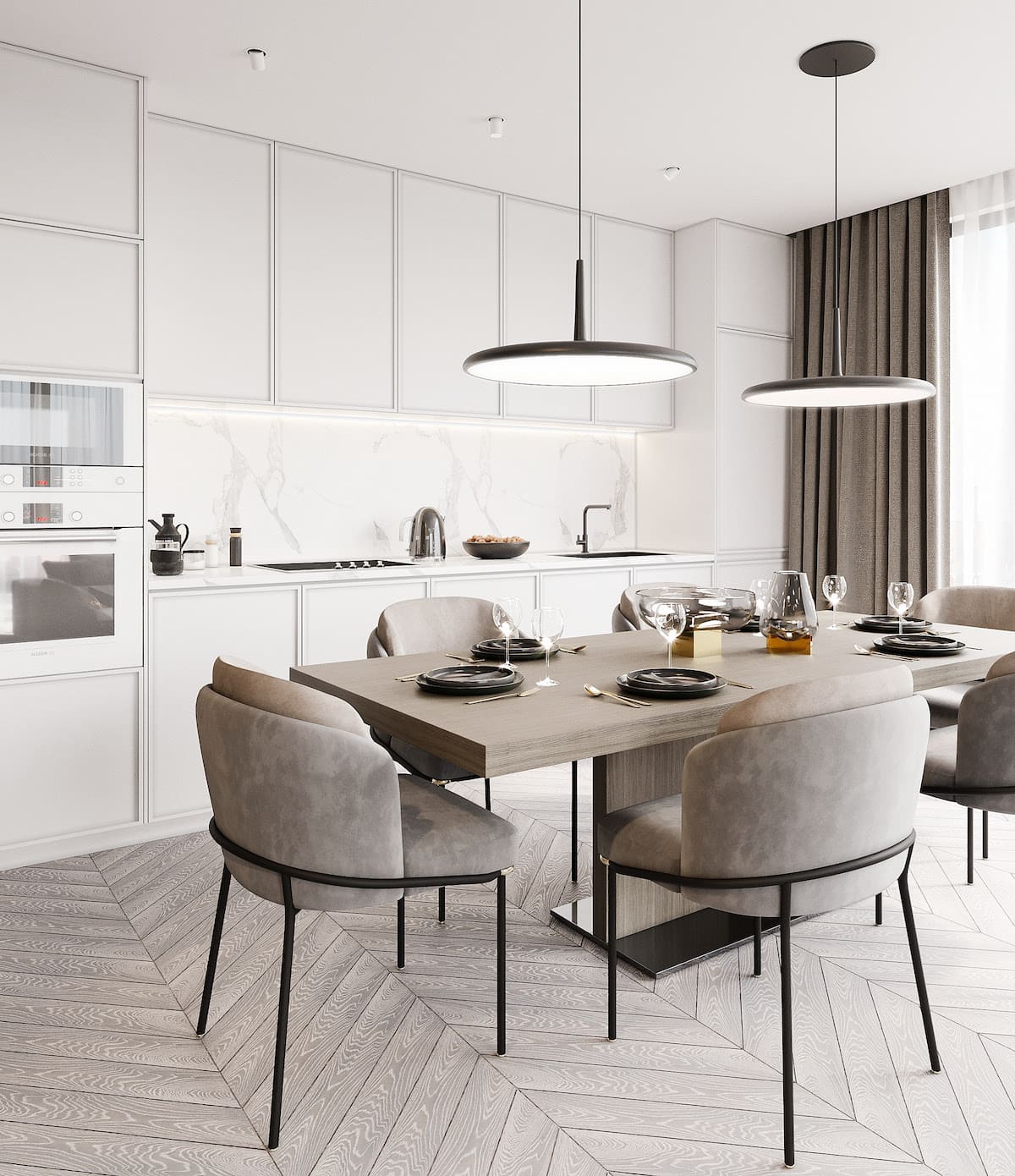 Современная белая кухня 2024 с модным дизайном – всегда выглядит изумительно. Она создает приятное ощущение легкости и комфорта. Это вселяет уверенность в том, что любое блюдо на такой кухне будет правильно приготовлено. По этой причине владельцы ресторанов практически всегда выбирают белые кухонные шкафы.