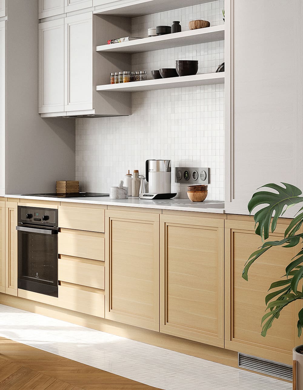 Дерево – материал, который всегда актуален, и его теплоту можно усилить, используя в нем белые акценты. Белая мойка будет отличным выбором, чтобы добавить свою нотку скандинавского стиля или фармашина в дизайне вашей кухни.
