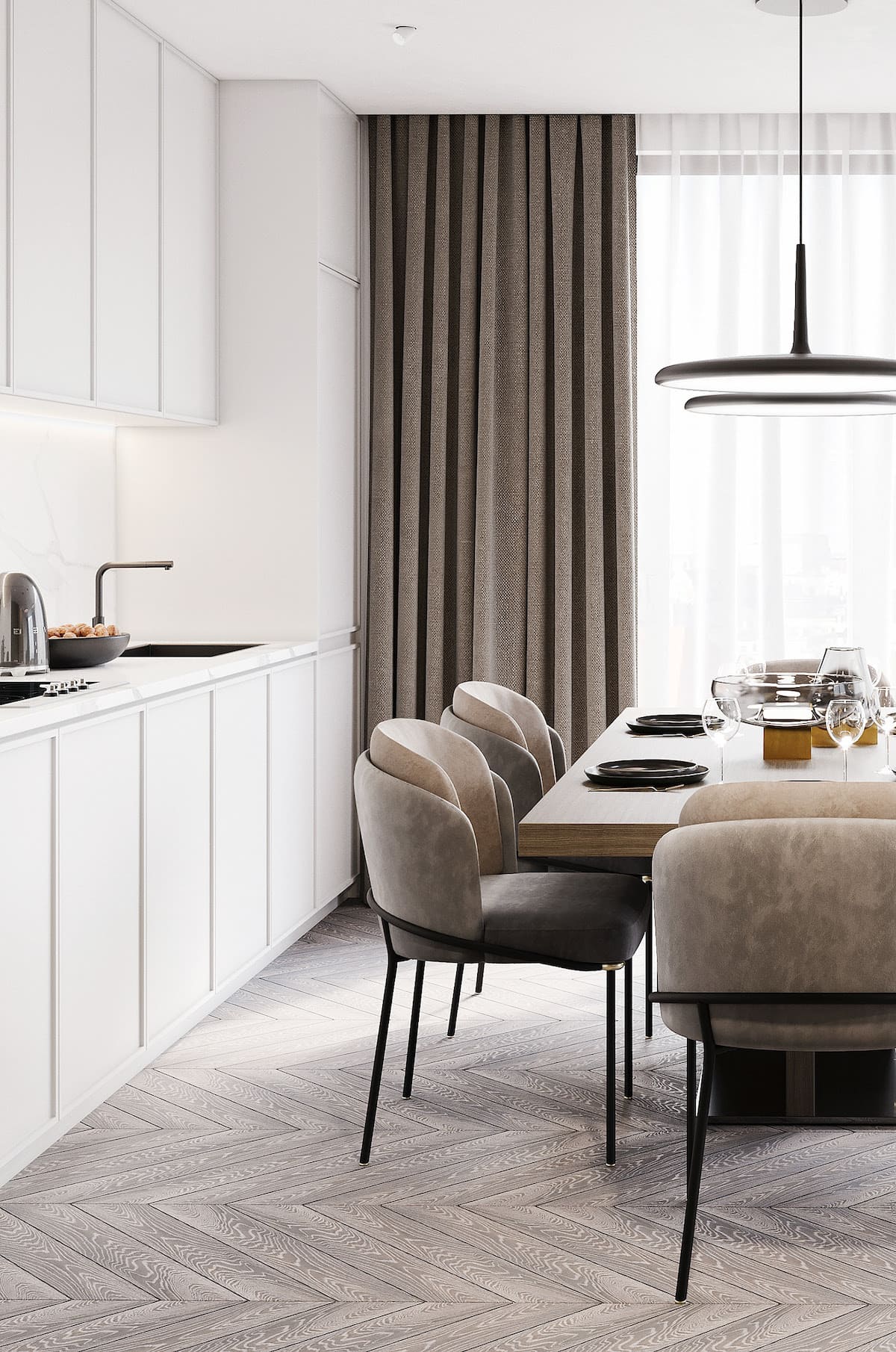 Это абсолютно нейтральный цвет, он подходит для любого стиля (от традиционного до современного). На белом фоне прекрасно выглядят произведения искусства и аксессуары, наполняющие пространство интересными контрастами.