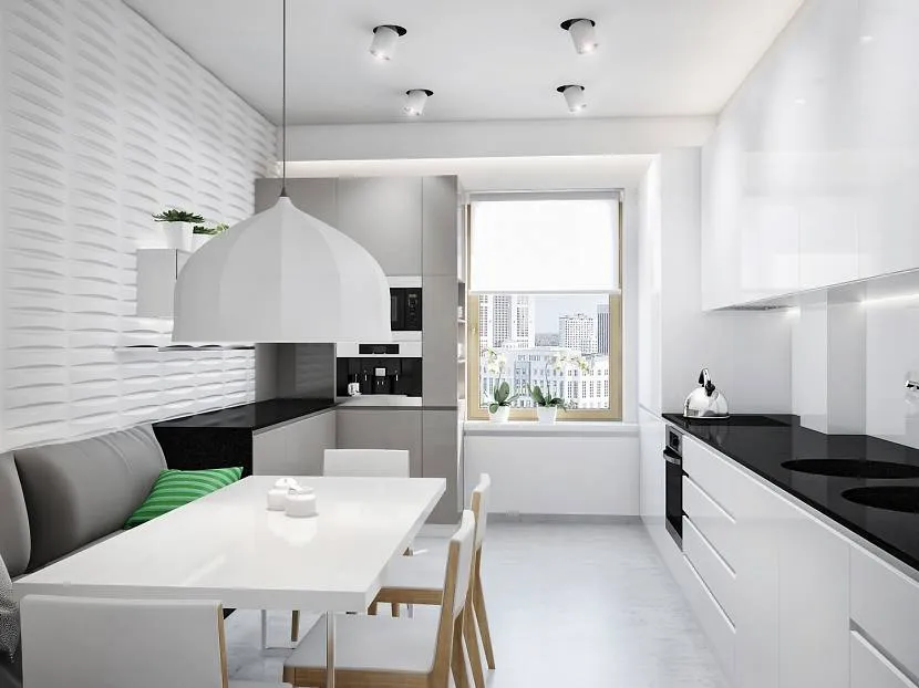 Минимализм. Один из основных потребителей всевозможных белых оттенков, прекрасно гармонирующих со строгими линиями и минимальным декором. Лаконичная эстетика допускает комбинации с контрастными цветами: черным, коричневым, темно-синим.