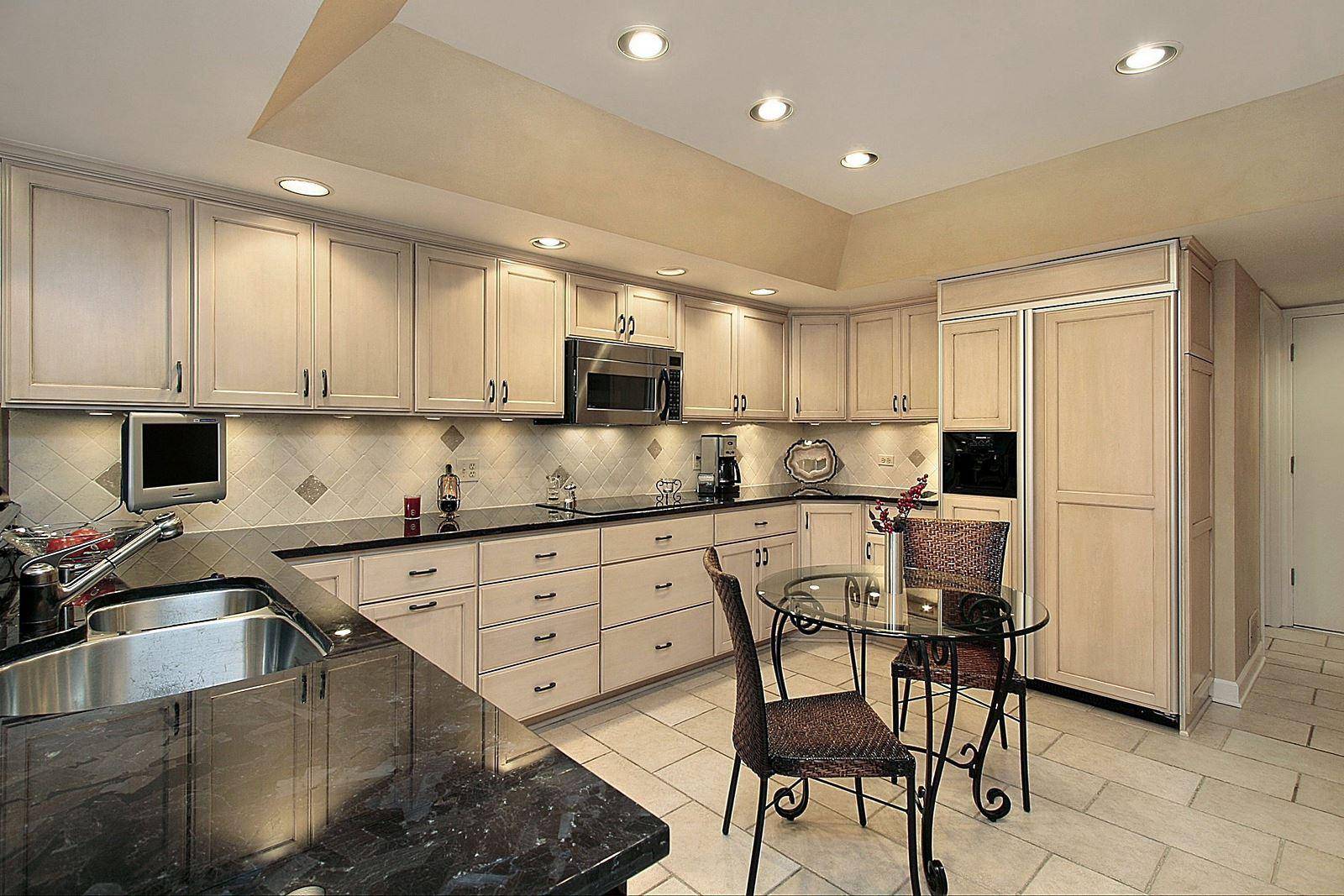- Шкафчики нижнего ряда должны быть немного светлее напольного покрытия.