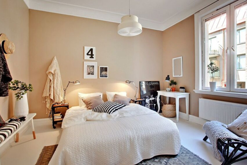 Беж идеален для отделки спальни, его мягкость способствует расслаблению и восстановлению сил. Уютно будут смотреться комбинации с натуральными материалами: деревом, текстилем и шерстью.