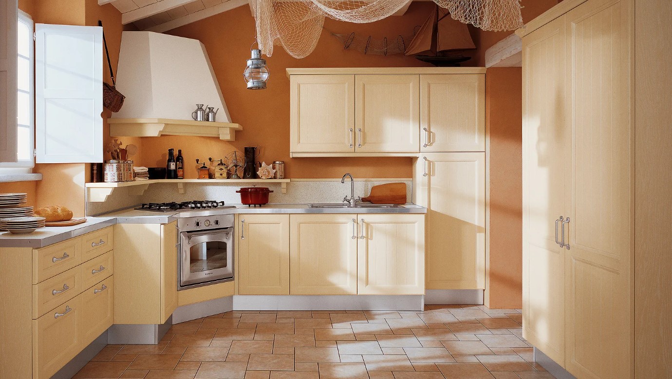 Оранжевый и бежевый – тоже неплохое сочетание при условии, что оттенки подобраны правильно. Лучше, если оранжевого будет не много (если это яркий апельсиновый цвет), но зато такие акценты оживят бежевую кухню.