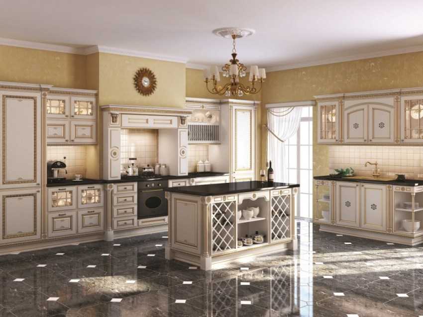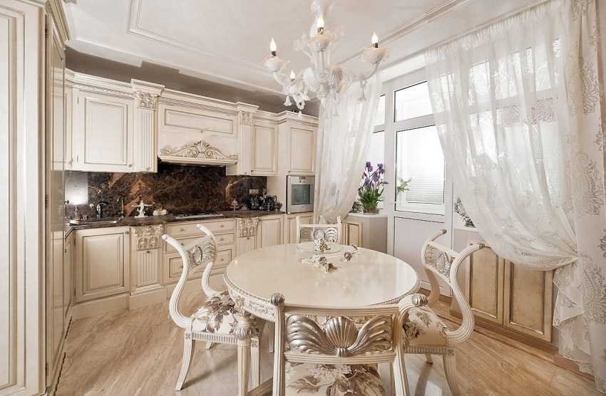 На фото дизайн кухни в светлых коричневых тонах в классическом стиле