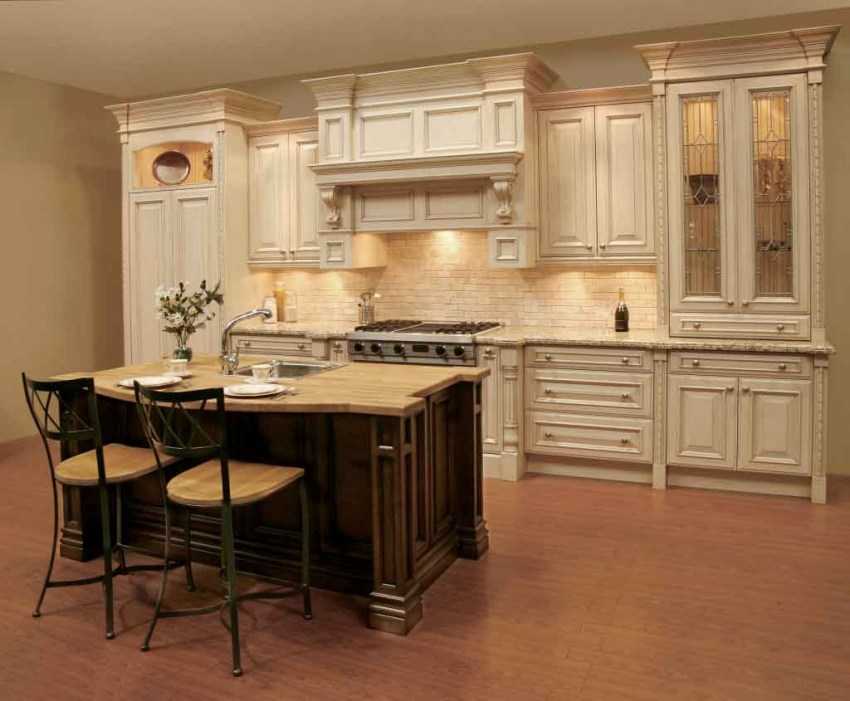 Выполнение кухни в классическом стиле рассчитано на применение только цвета беж и различных его вариаций. Однотонной можно выполнить комнату, если она очень маленькая.