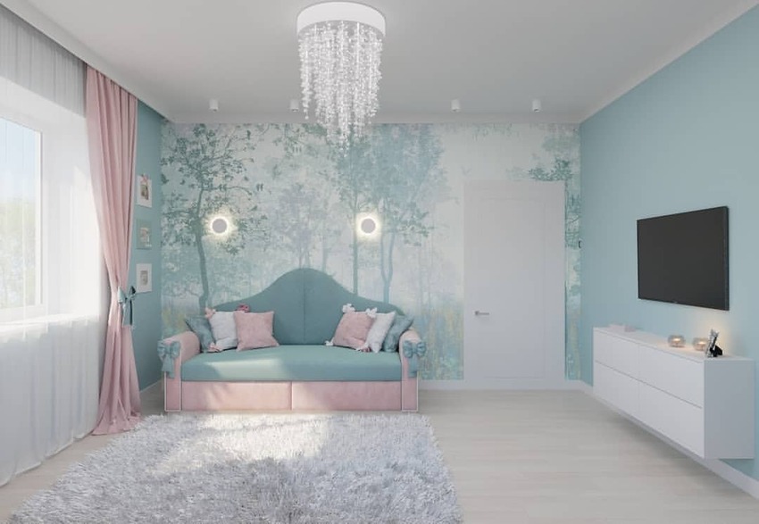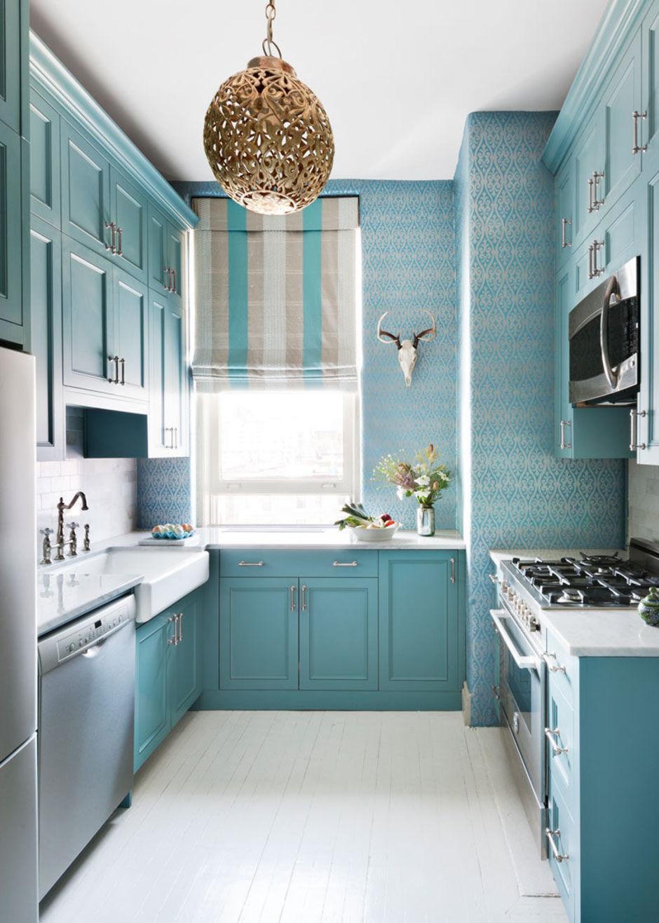 Светлые бирюзовые тона помогут не только визуально расширить небольшое помещение, но и придадут воздушности