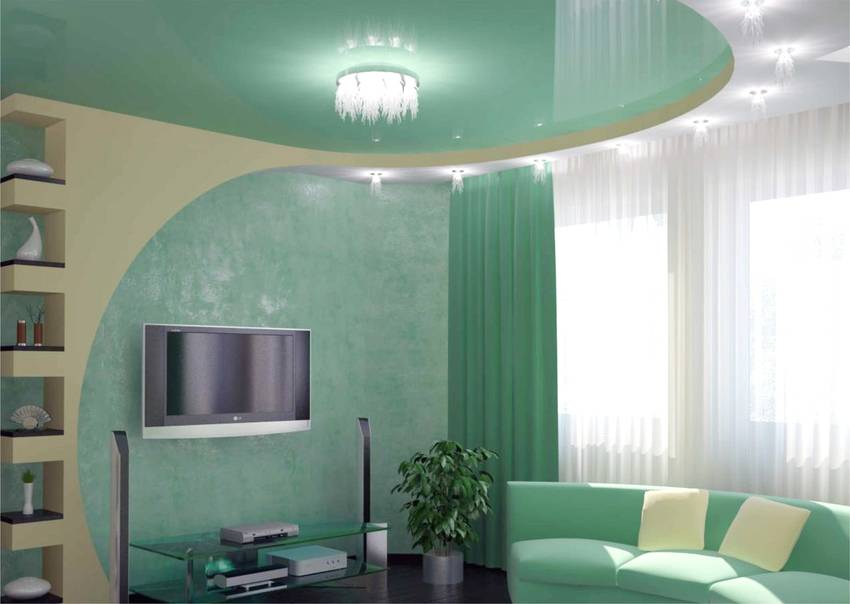 Бирюзовый натяжной потолок обладают массой преимуществ