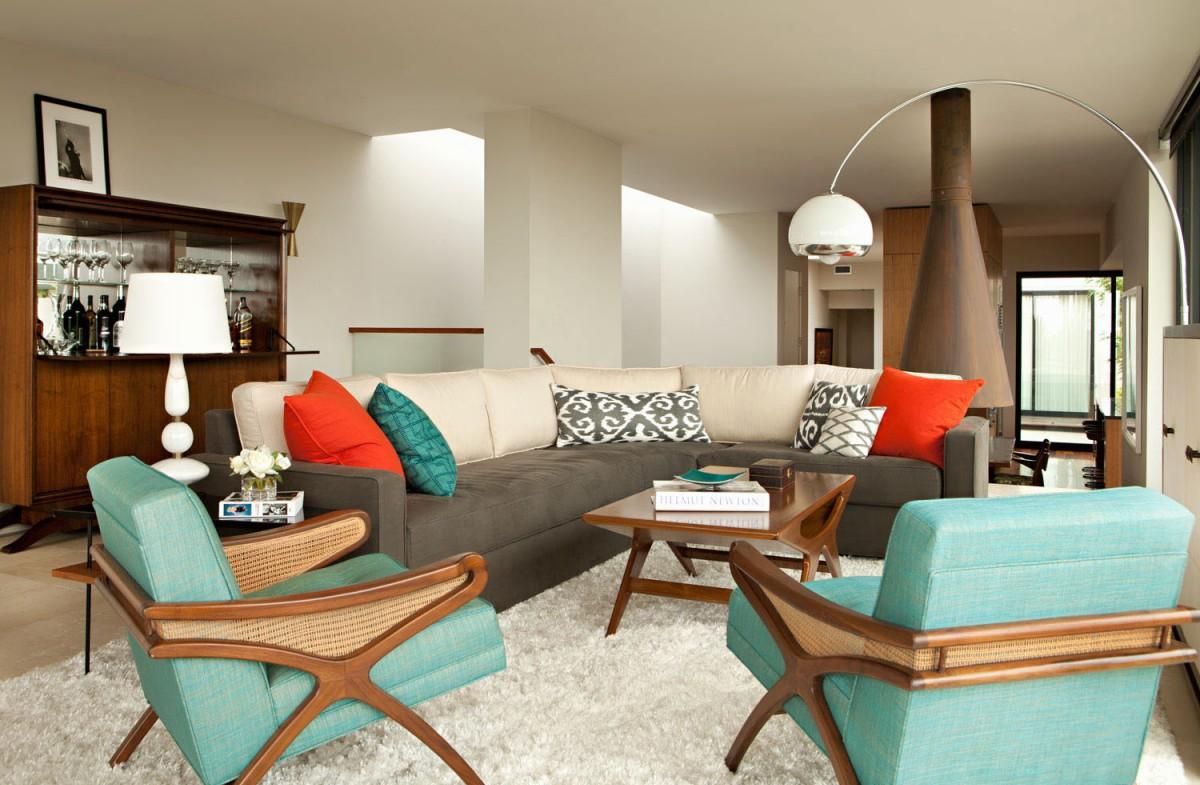 На фото стильная гостиная с акцентами темно-бирюзового цвета.