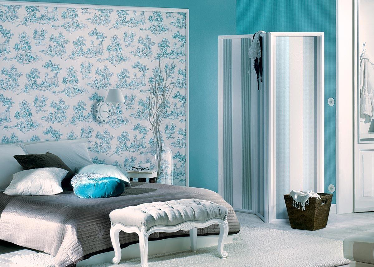 Также стоит обратить внимание на обои. На таком материале легче выбрать готовые сочетания бирюзового цвета с другими