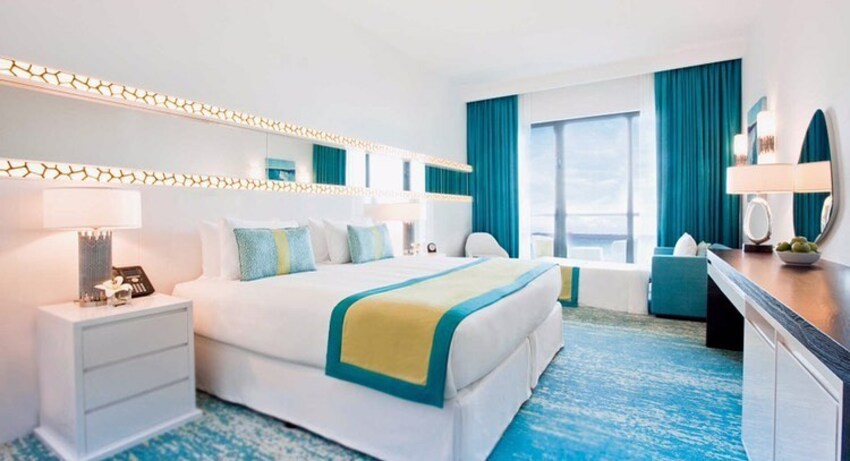 Разнообразные оттенки этого волшебного цвета являются прекрасными акцентами дизайна спальни в бирюзовых тонах.
