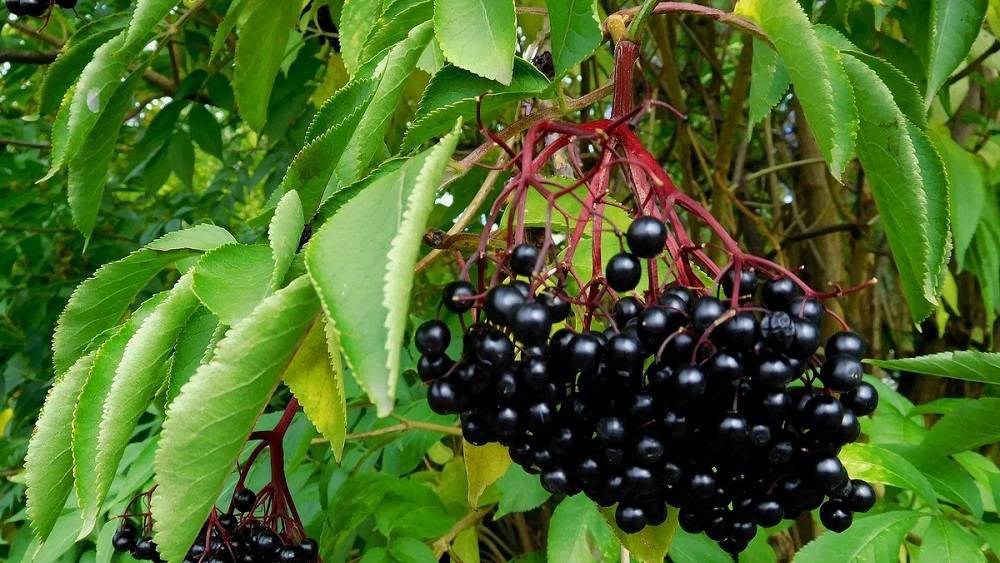 Это древообразный кустарник зеленого окраса с гроздьями ягод черного или темно-фиолетового цвета. Также существует дерево с красными ягодами. Цветение проходит белыми цветами из которых образуются плоды.