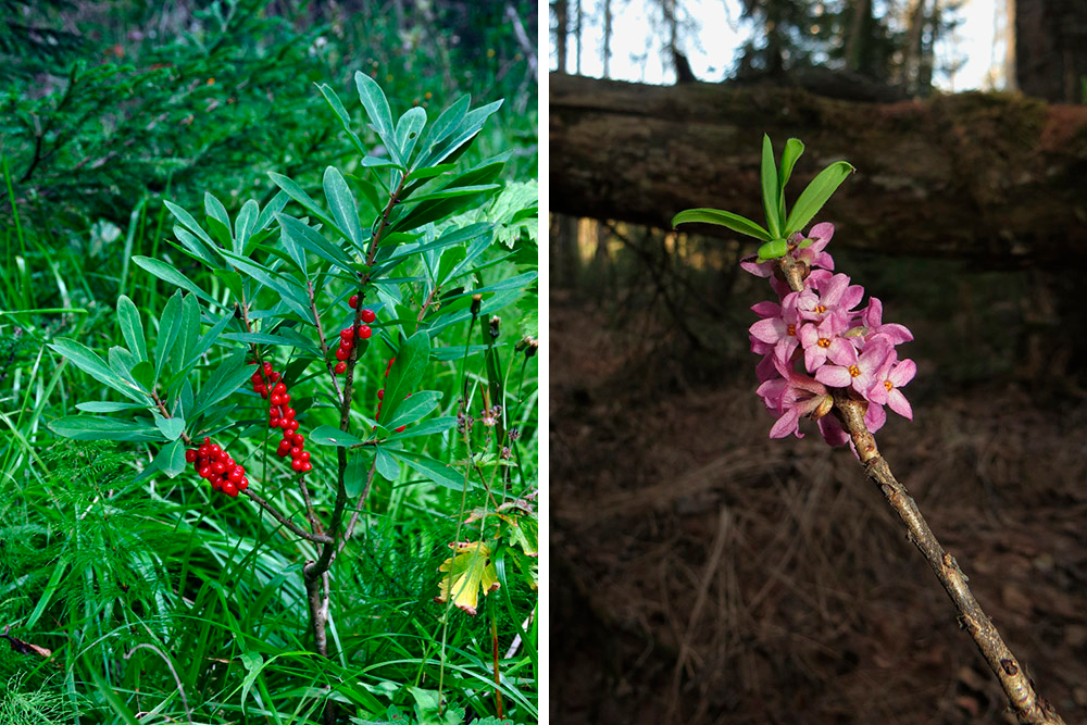 Если вы попытаетесь сломать веточку волчеягодника, на руках останутся частицы его коры. Их вдыхание вызывает чихание, насморк, кашель, а при попадании в глаза начинается конъюнктивит. Но сильнее всего можно отравиться ягодами.