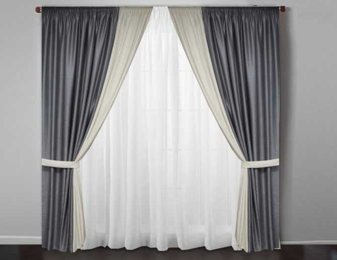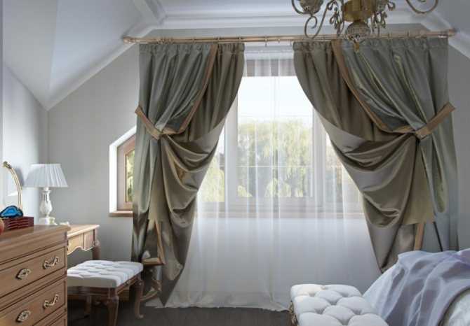На занавески крепят каскад держателей, чтобы окна оказались в обрамлении двух пережатых в нескольких местах столбиков.