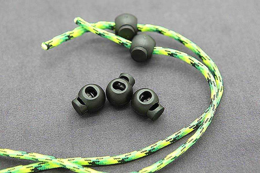Последний штрих – это оборудование шнура фиксатором. Он используется для управления циклами поднятия и опускания полотна. Свободный конец шнура можно оформит в виде узла, задекорировать крупной бусиной или бантом.