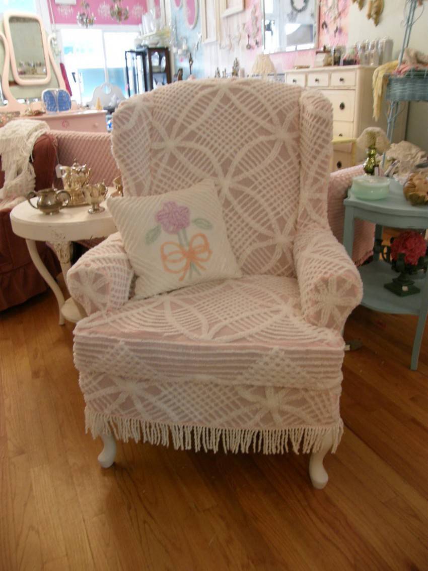 Под стиль кантри или прованс подойдет лоскутная в стиле пэчорк ткань, вязаные полотна и прочие элементы ручной работы. Очень красиво будет смотреться простая накидка без фиксаторов, иногда бывает достаточно накрыть внутреннюю часть кресла в зоне сиденья и спинки, чтобы защитить заводскую обивку или внести новизну в интерьер.
