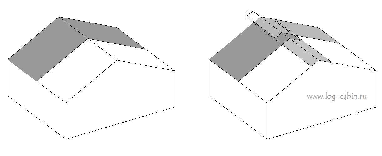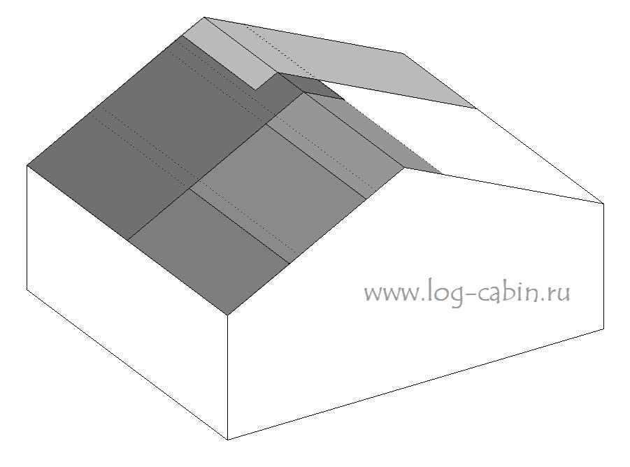 Если же длины одного листа покрыть сразу обе стороны крыши не хватает, то каждый скат крыши кроют отдельно, причем устраивают нахлест листа рубероида через конек, сантиметров на 20-30 в каждую сторону.