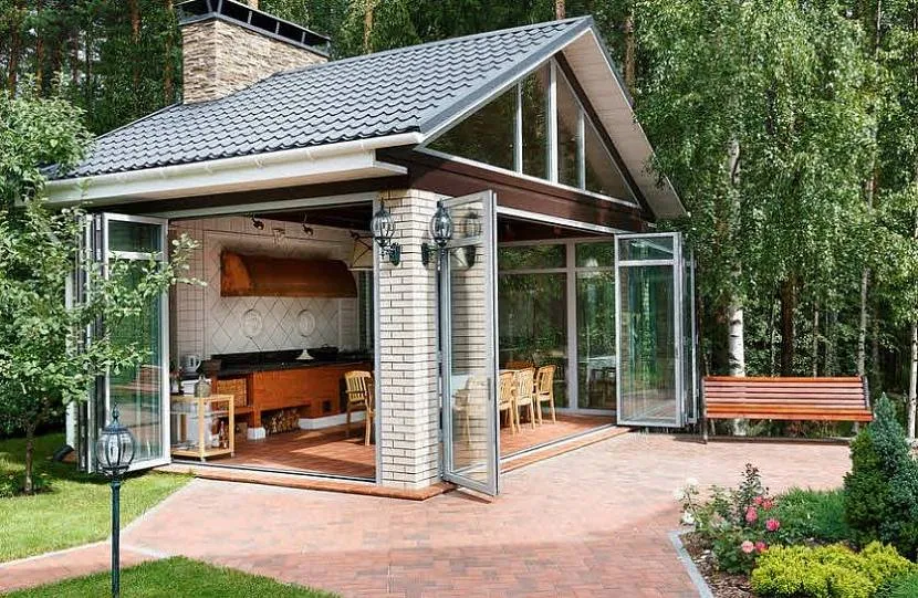 Расположенный внутри мангал или электрический обогреватель смогут создать комфортную температуру холодным зимним вечером, а качественное утепление не даст теплу преждевременно покинуть постройку.