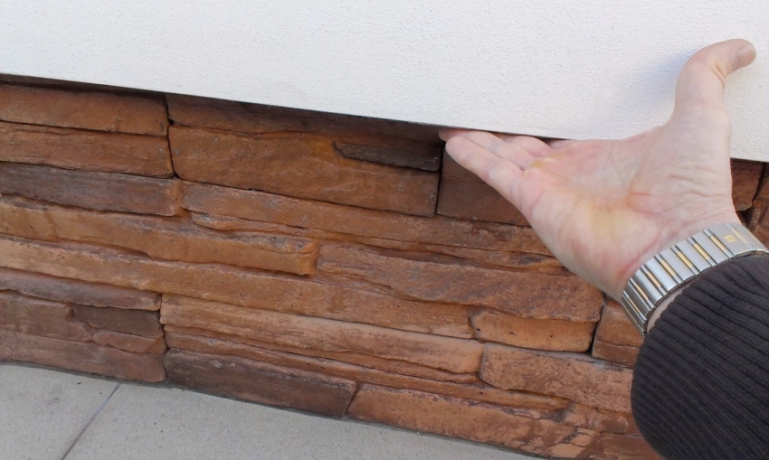 При монтаже природного камня потребуется заполнение стыков мощным герметиком. Сам он впоследствии окрашивается, чтобы выглядеть максимально естественно.