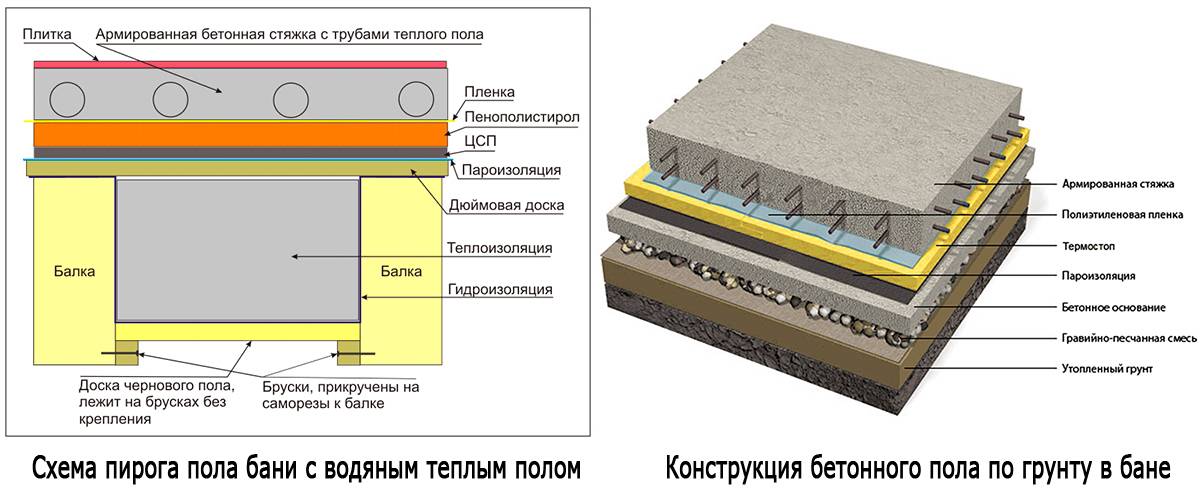 Чтобы понять, как сделать полы своими руками в парном отделении бани, рассмотрим каждый из вариантов более подробно.