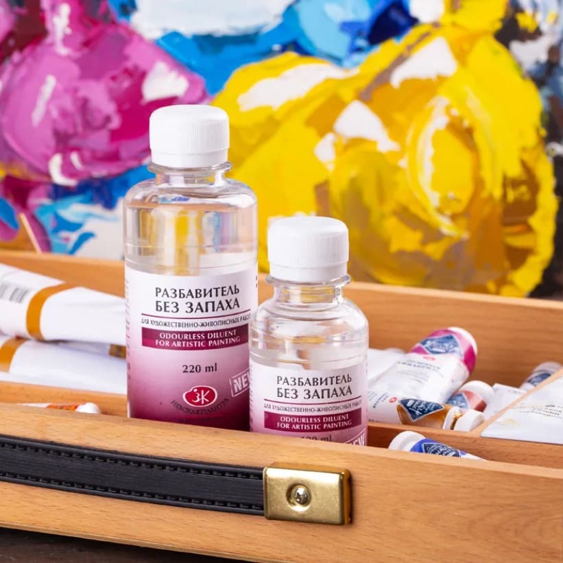 Разбавители для художественных красок: льняное масло, пинен, многокомпонентный состав «тройник»
