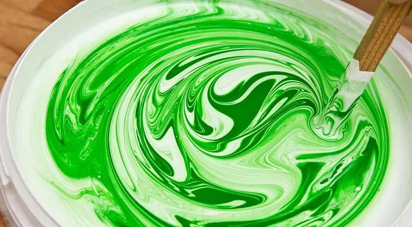 Его вводят в краску по каплям. При этом необходимо непрерывно перемешивать состав. Делать это лучше при помощи миксера. Добившись нужного оттенка, проверяют, как смесь смотрится на поверхности. Для этого окрашивают кусочек нужного материала.