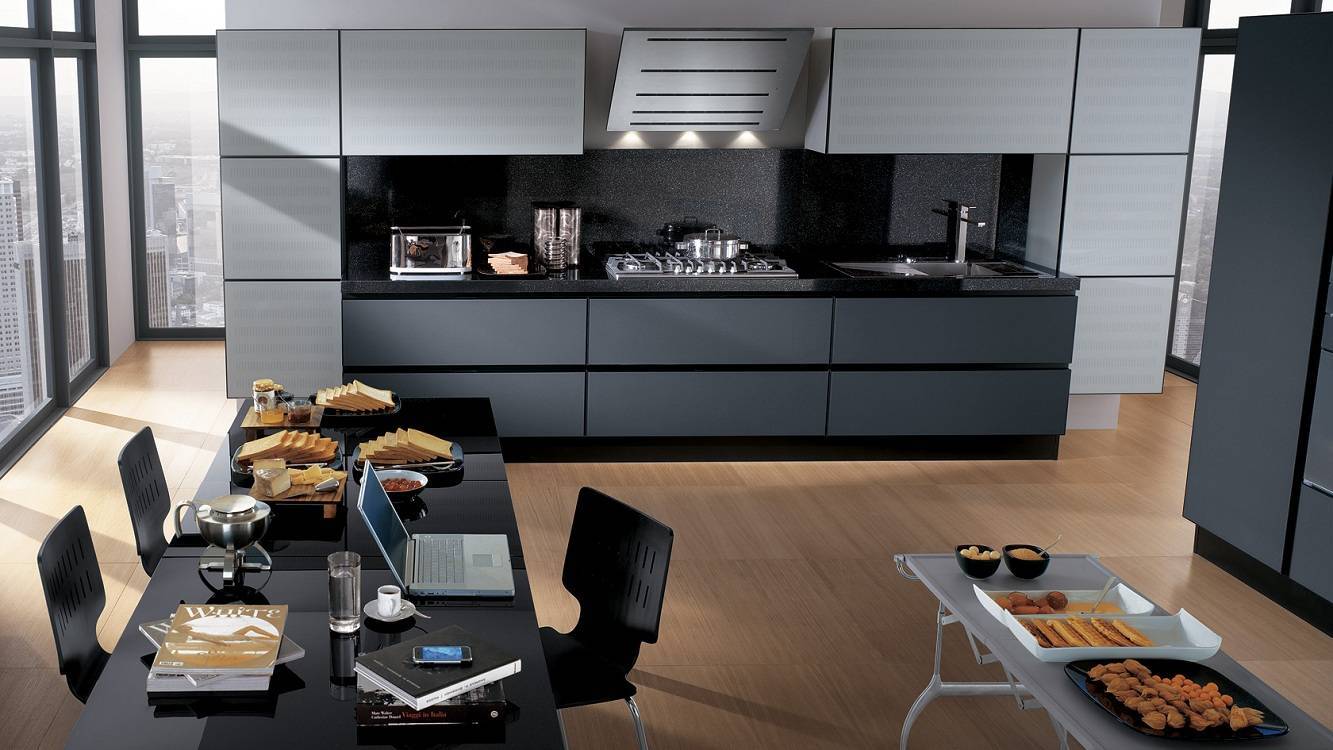 Такой предмет интерьера, как кухонный гарнитур, выполненный в черном цвете, нуждается в правильном фоне, который выгодно выделит все его достоинства. Он может служить акцентом для бежевых или белых кухонь. Это сочетание придает пространству динамику и изысканность.