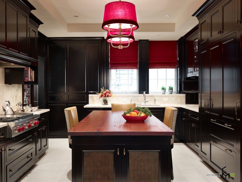 Чёрный цвет не рекомендуется использовать на кухнях с маленькими окнами, особенно если выходят они на северную сторону.