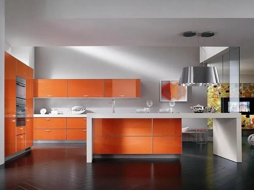 Детали гарнитура оранжевого цветаИсточник kitchenguide.su/