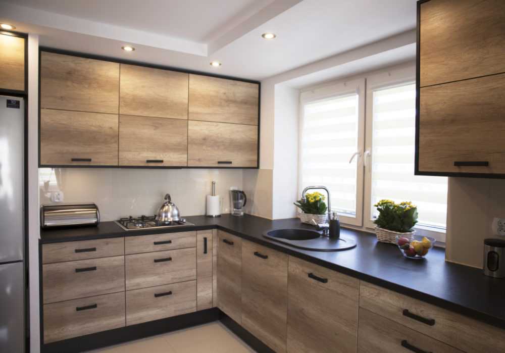 Для темных столешниц одинаково важно, чтобы на кухне было достаточно солнечно. В ситуации, когда в нее попадает мало солнечного света, безопаснее использовать яркие столешницы, что естественным образом осветлит ее. Однако, если у вас большие, просторные окна, темная столешница может придать нашей кухне неповторимый шарм