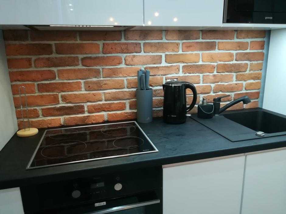 Не стоит забывать и про акцент на стенах, поэтому выполненный из черной глянцевой плитки, керамогранита или мозаики фартук для кухни – оптимальный вариант, который рекомендуют взять на заметку специалисты.