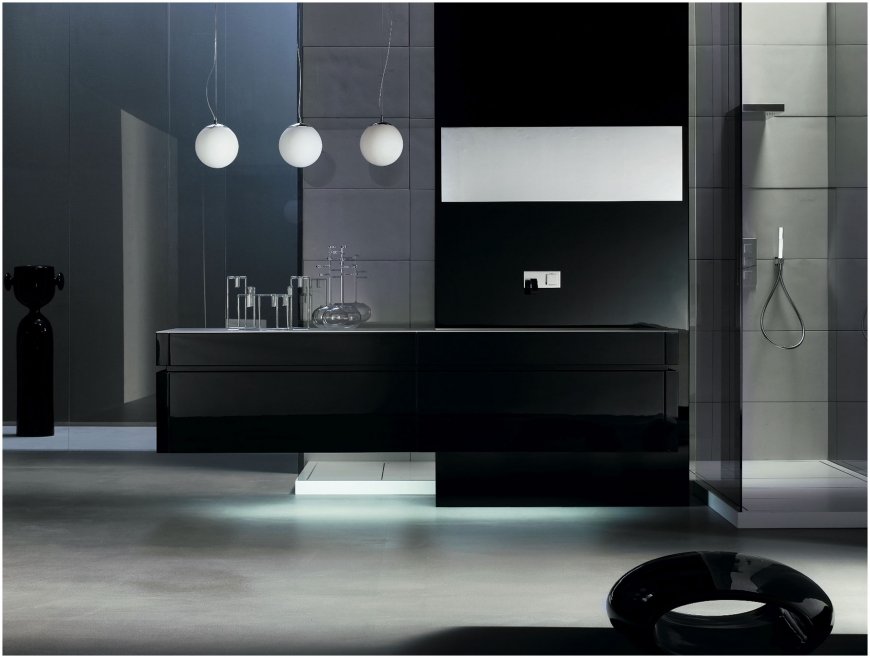 Соблюдение этого правила позволит не переусердствовать с количеством черного и тем самым не допустить превращения ванной комнаты и туалета в угнетающую темницу.
