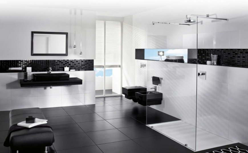 - нужно быть готовым к трудному выбору материалов для отделки ванной комнаты, поскольку не все производители выпускают свою продукцию в черных и белых цветах;