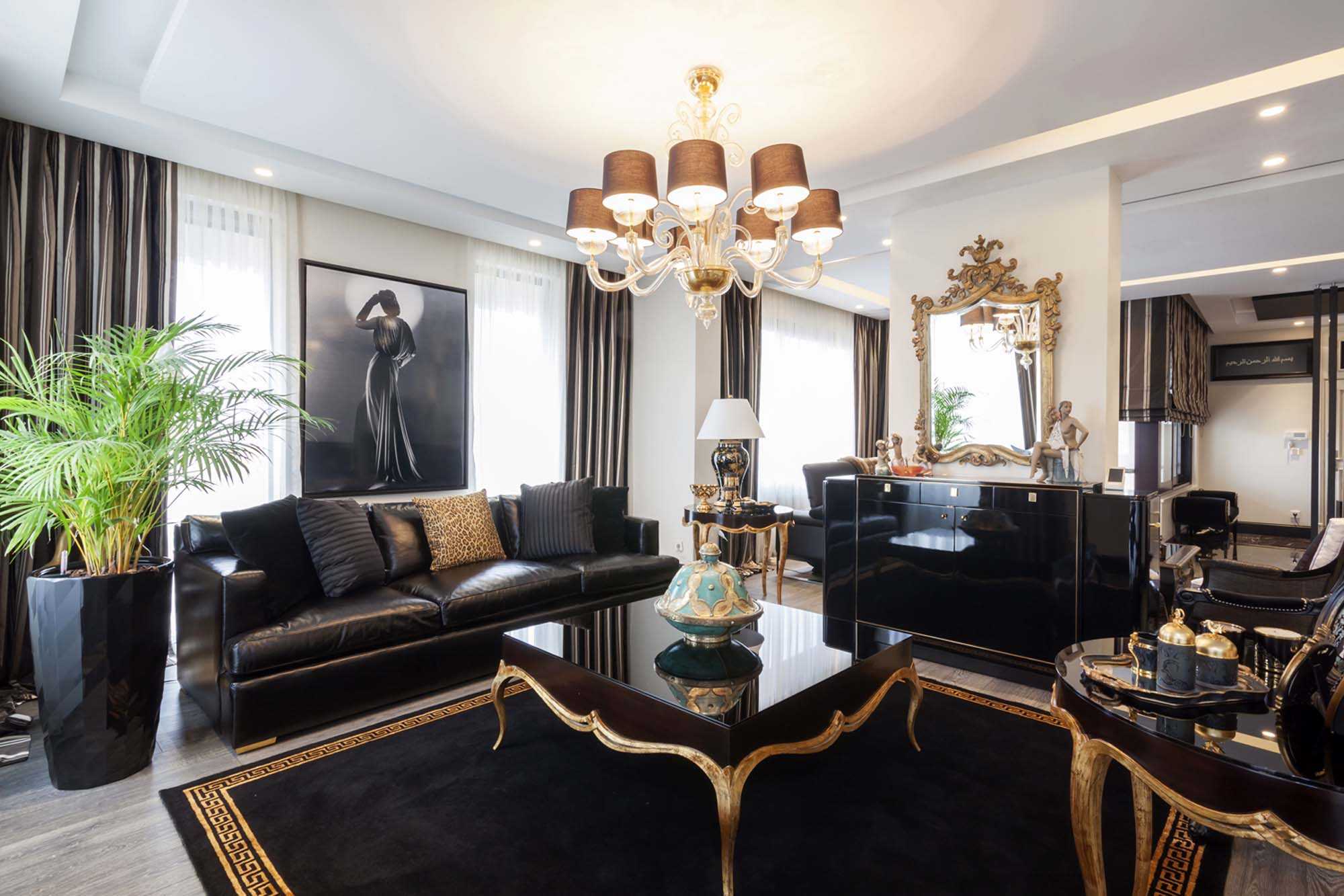 Несмотря на то, что порой можно увидеть полностью окрашенное в цвет ночи помещение, все-таки более приятным для восприятия будет дуэт с преобладанием белого. Но комбинации поверхностей могу быть разными. Традиционная мебель для гостиной в контрастном сочетании будет, скорее всего, черной.