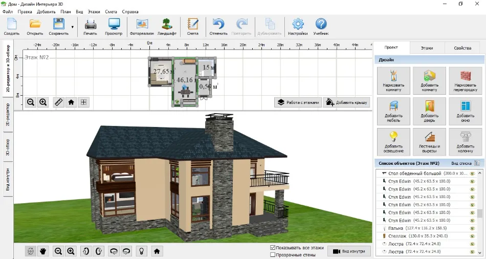 Перед началом чистовых работ с помощью программы Дизайн Интерьера 3D вы можете создать проект, чтобы заранее понимать, как будет выглядеть помещение, куда ставить мебель и т.д. С ее помощью легко разработать уникальный дизайн мансарды, гостиной или кухни. Программа бесплатная, скачать ее можно по кнопке ниже.