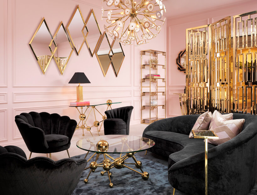 Сам по себе черный цвет может казаться гнетущим и отталкивающим, но если подобрать к дивану удачно перекликающиеся элементы, интерьер станет невероятно привлекательным.
