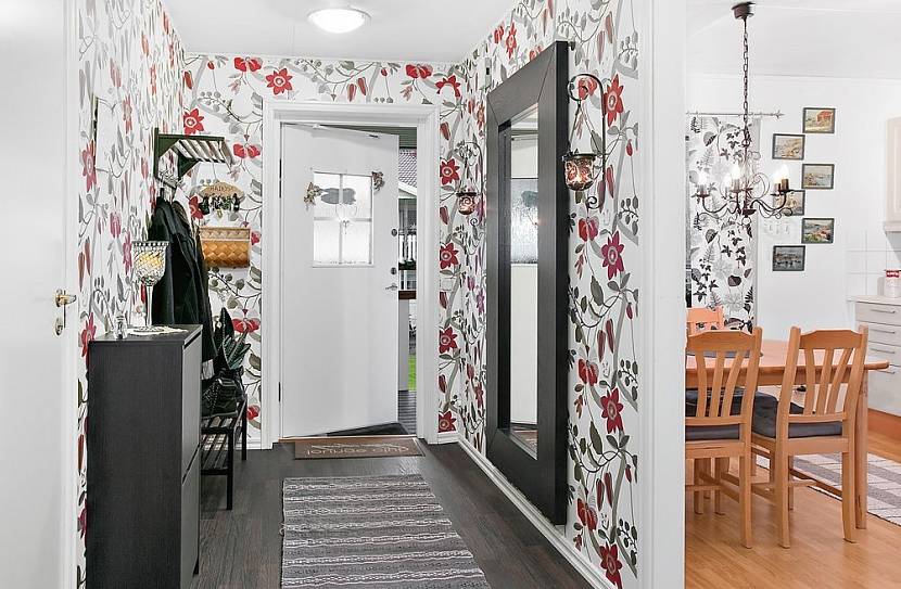 Обои с крупным цветочным орнаментом. Освежают темный интерьер; он приобретает нотки романтичности.
