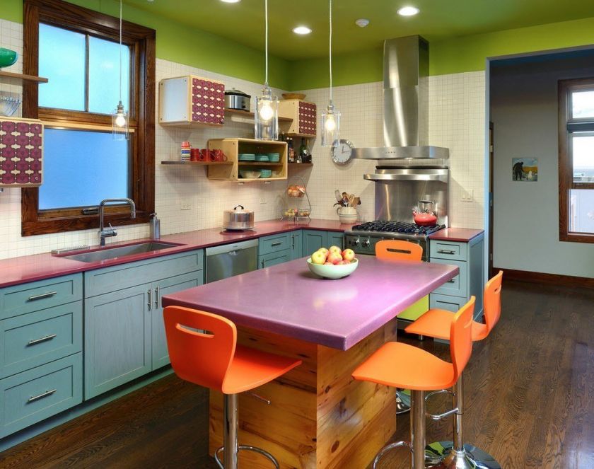 . Зонирование кухни с помощью цвета используется довольно часто. Рабочую и обеденную зону выделяют различными цветами, гармонирующими друг с другом. Также часто используют разные цвета для выделения всей площади кухни, если она совмещена с гостиной.