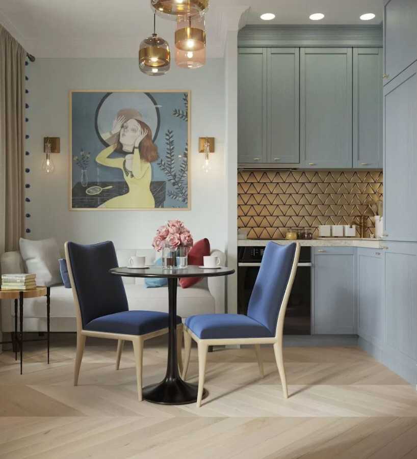 К этому дуэту можно добавить желтые золотистые акценты, оживляющие общую картину