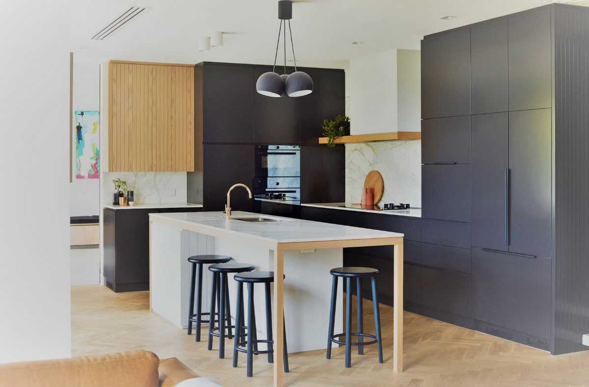 Другое дело, если у вас есть черные кухонные шкафы, как материал корпуса. Его нельзя рассматривать как исключительно современный цвет, но он хорошо работает на шкафах из ламинированных материалов.