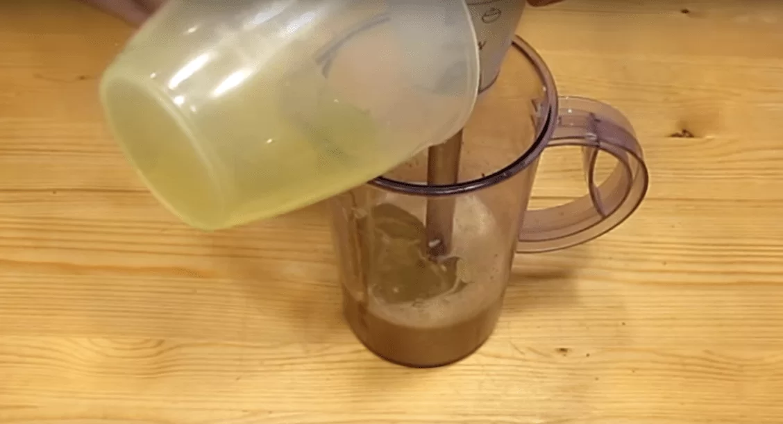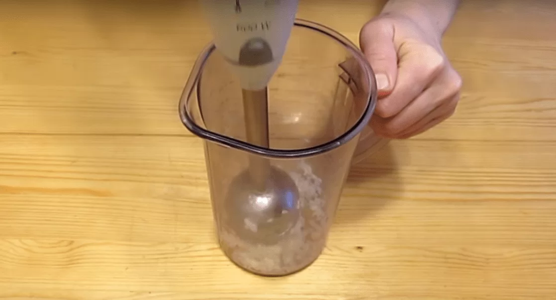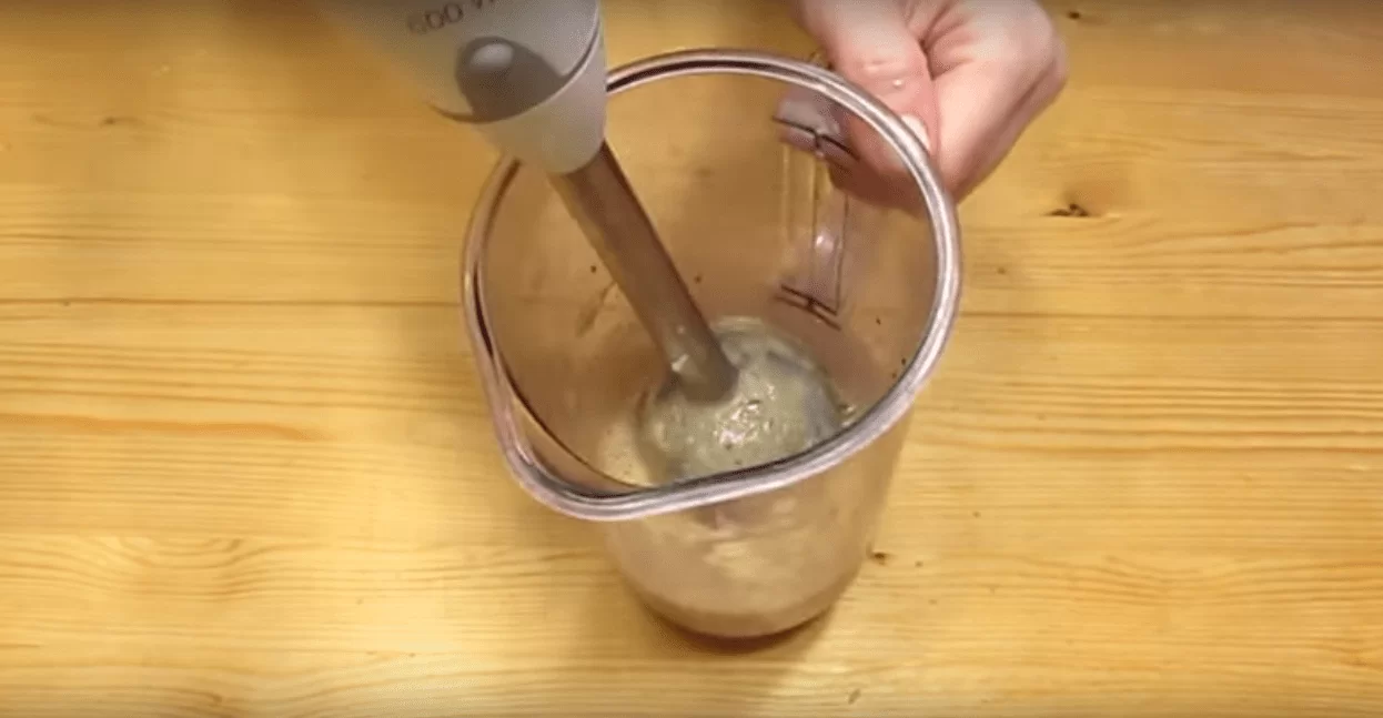 Помещаем составляющие в чашу блендера и прорабатываем до однородности.