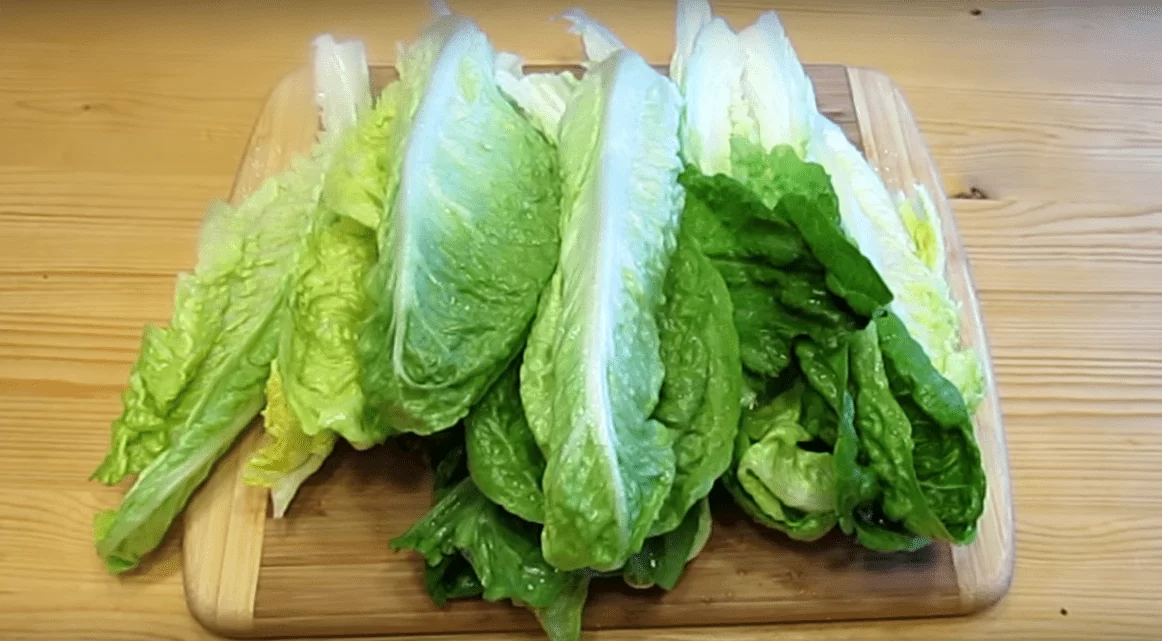 Далее перейдем к листовой составляющей нашего салата. Традиционно Цезарь готовиться из листового салата Ромен.