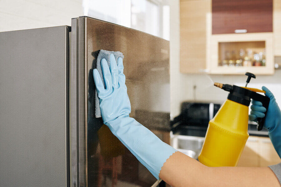 Оботрите холодильник с внешней стороны, чтобы избавиться от следов пальцев и другой грязи на нем.