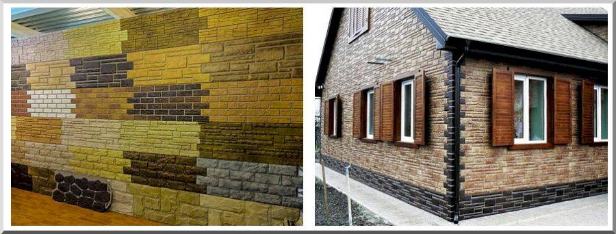 Этот вариант производится из ПВХ. Технология предполагает два процесса: литье и прессовка. Ввиду того что чаще всего используют отделку цоколя под дикий камень, предпочтительным считается второй вариант.