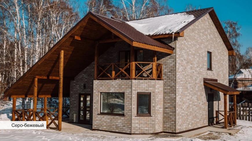 Отделка дома фасадной плиткой Технониколь HAUBERK “Кирпич серо-бежевый”