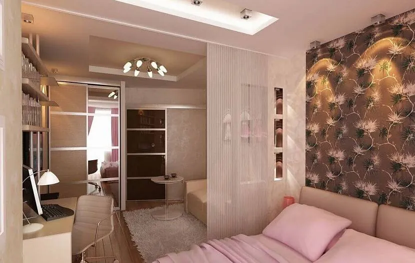 Чтобы правильно подобрать и расставить мебель, необходимо определиться для чего, помимо сна, будет использоваться комната. В спальне можно разместить рабочую зону, место для макияжа, гардеробную комнату или шкаф. Плазма и стереосистема – неотъемлемая часть спальни киноманов. Разграничить зоны можно с помощью использования разных обоев.
