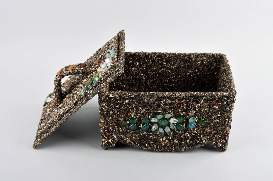 Даже мелкие осколки ракушек прекрасно будут смотреться на крышке шкатулки. Сверху можно покрасить или покрыть прозрачным лаком.