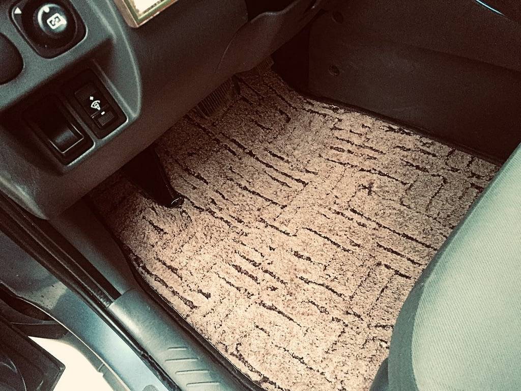 Коротковорсовый палас можно разрезать на части и постелить на пол автомобильного салона вместо обычной «резины». Лучше выбирать покрытие тёмных тонов, но не чёрное, чтобы меньше была видна грязь. Ухаживать за текстилем сложнее, зато салон с ним выглядит эстетично и стильно. Чтобы края автоковриков не осыпались, их обрабатывают оверлоком.